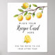 Rustik bröllopsfest skylt med akvarellillustration av citroner som hänger från en trädgren. Texten säger "placera ditt receptkort här för att bruden ska använda år efter år."