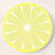 En ljusgul citronskiva pryder denna roliga dricksunderlägg. Designen är från originalkonst.