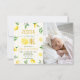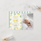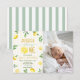 Visa upp din "Huvudsqueeze" med denna charmiga akvarell citron foto inbjudan. Ditt barns bild ramas in av frodiga citrusgrenar, syrliga citronskivor och mjuka blommiga accenter. Denna personliga design kombinerar en fräsch botanisk look med en söt randig bakgrund, vilket gör den till en vacker souvenir för en solfylld första födelsedagsfest.