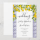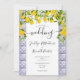 Med citroner, blomning och ett blått Medelhavsplattor-mönster, kan denna eleganta botaniska bröllopsinbjudan anpassas med din speciella evenemangsinformation. Designad av Thisisnotme©