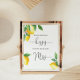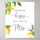 Vattenfärg citron hur många kyssar bröllopsfest spel skylt. Matchande föremål finns.