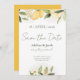 Sol på terrassen, en antydan till havsbris, och en skål citroner på bordet - det är känslan bakom detta kort. Handmålad citrus och mjuk salvia grönska ramar in modern, oskomplicerad typografi så att era namn hamnar i centrum. Den citronfärgade baksidan blinkar med optimism, som den första skålen på natten. Det är en liten souvenir från den säsong ni alltid kommer ihåg: fräsch, ljus och full av löften.