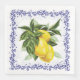 En vit middagservett prydd med saftiga citroner och gröna blad, inramad av en delikat blå toile-filigranbård, ger en fängslande touch av elegans, europeisk flärd och friskhet till varje middagstillfälle, från lunch till trädgårdsfester eller shower. Dess livfulla design symboliserar vitalitet och entusiasm, medan den invecklade filigranen tillför sofistikation och frammanar en gammaldags charm som påminner om den europeiska landsbygden. Denna mångsidiga och vackra servett höjer inte bara dukningen utan fungerar också som en samtalsstartare, vilket gör den till ett idealiskt val för att förtrolla och imponera på gästerna vid varje tillfälle.