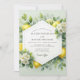 Experience the fresh elegance of a Mediterranean-inspired union. This beautiful design features vibrant yellow lemons and delicate white blossoms nestled among lush green foliage. The watercolor artistry on a pale green background creates a light, airy, and romantic atmosphere, perfect for a chic and sunny matrimonial affair.