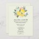 Citroner, blommor och grönska på detta vackra lakan av pappra med era uppgifter från bröllop på framsidan. Bakgrunden består av en känslig grönt. Den här inbjudan har också ett matchande kuvert i min butik Detta är en budgetmedveten inbjudan så ingen OSA eller Spara datumet är tillgänglig, men du kan överföra designen för att göra en egen