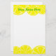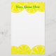 Brevpapper som presenterar en gräns av citronskivor över bästa och nedersta. Personifiera med ditt namn i grönt på bästa. Sök efter att matcha objekt i "den mat" kategorien av Jills Paperie.
