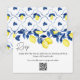 Förenkla din bröllopsplanering med detta stilrena och moderna Sommargul / Citrus Brunch Bröllops-svar QR-kort, designat för par som vill ha både elegans och bekvämlighet. Med en sömlös akvarellkant av ljusa gula citroner och mjuka blå blad längst upp fångar denna design den fräscha, solbelysta känslan av dagens mest populära sommartermer för bröllop. Baksidan visar ett koordinerat sömlöst mönster av citroner och klassiska blå kakel motiv, vilket ger kortet en polerad, medelhavsinspirerad look som sticker ut.