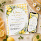 Fira din kommande lilla glädjebunta med denna eleganta lemonin-inspirerade bröllopsfestinbjudan. Med en mjuk gul och vit gingham-bakgrund, ömtåliga akvarell-lemoniner, frisk grönska och en rosa rosett skapar denna design en varm och inbjudande atmosfär som är perfekt för en sommar- eller citrus-inspirerad bröllopsfest. Text: Skål för kärlek, skratt och citroner!