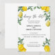 ändra datum kungörelse med en magnifik dekoration av gula citroner och gröna blad.