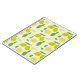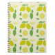 Citronskivor, hela citroner grönt löv och gult bakgrund.