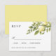 Den här eleganten botaniska OSA kort har en sofistikerad vattenfärg gren av citroner och löv av gult på den övre högerna av kortet med önskad respons och önskat datum och är designad för att samordna med vår samling av citroner och Löv i blommigt bröllop. Kort tillbaka till en samordnad blek gult färg. En modern och klassam utformning för elegant chic bröllop under vilken säsong som helst.