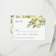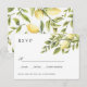 Den här eleganten botaniska OSA kort har en sofistikerad vattenfärg gren av citroner och löv av gult på den övre högerna av kortet med önskad respons och önskat datum och är designad för att samordna med vår samling av citroner och Löv i blommigt bröllop. Kort tillbaka till ett samordnat mönster av citroner på vit bakgrund. En modern och klassam utformning för elegant chic bröllop under vilken säsong som helst.