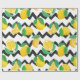 Den här designen visar citroner av gult och grönt löv på vit bakgrund med svart schevron mönster. Underbar för att frigöra teckningar, pappra hantverk eller presentfigursättning. Se till att du checkar ut "skum"-vyn för att se till att den är godtagbar.