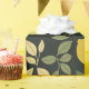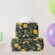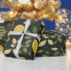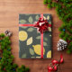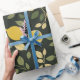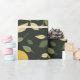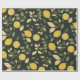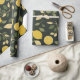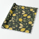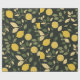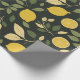 Ljuscitroner och löv mönster mot mörk grönt bakgrund.