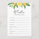 Be vänner och familj att lämna önskemål för bruden och brudgummen. Den har vattenfärgade illustrationer av citroner, orangar och lövbetesmark med motsvarande citron mönster. Perfekt för sommartid bröllop och möhippor.