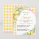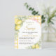 Fira din kommande lilla glädje med denna eleganta lemonin-tema inbjudan till babyfirande. Med en mjuk gul och vit gingham-bakgrund, ömtåliga akvarell-lemoniner, frisk grönska och en rosa rosett skapar denna design en varm och inbjudande atmosfär som är perfekt för en sommar- eller citrus-inspirerad babyfest.