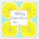 En etikett för en konserveringsburk med ljusa gula citronskivor handillustrerade med blyerts och akvarell på en turkos bakgrund med mörkgrå text som du kan redigera med dina detaljer.