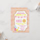 Citronläsk födelsedagsinbjudan med söt rosa och gul banner med solsken och citronläskglas med sugrör på en rosa och guld glitterprickig bakgrund. Denna valfria citronläsk födelsedagsinbjudan kan enkelt anpassas för ditt evenemang genom att helt enkelt lägga till dina uppgifter. Detta är en tryckt design utan riktig glitter, etc.