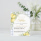 Fira din kommande lilla glädje med denna eleganta citroninspirerade bröllopsfestinbjudan. Med en dammig blå och vit gingham-bakgrund, ömtåliga akvarellcitroner, frisk grönska och en rosa rosett skapar denna design en varm och inbjudande atmosfär som är perfekt för en sommar- eller citrusinspirerad bröllopsfest.