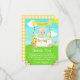 Detta söta och fantasifulla tack-kort visar en blond tjej med ljus hy vid ett gult citronstånd som är dekorerat med blommor och vimplar. I bakgrunden finns en blå himmel, solsken och fjärilar. Texten kombinerar dekorativa och sans-serif-teckensnitt för en snygg och modern stil. Perfekt för en sommarfödelsedagsfest.