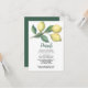 Designad för att matcha våra The Lemon Branc bröllopsinbjudningar och tillbehör, har detta rustika brölloppskort för gästinformation en vintageinspirerad handritad illustration av ett citronträd i grönt och gult.