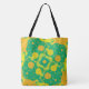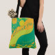 This hand drawn tote bag bursts with personality. The design has bold abstract circles in yellow and orange on a green background, accented with wavy bands of green and orange. Across the front, the word SHOPPING appears in a classic serif font (customizable to your favorite word or name), paired with the playful script Just Me. It’s a vibrant, casual bag that’s perfect for everyday errands, fashion, or fun outings.