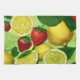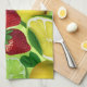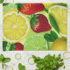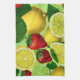 En livfull kökshandduk med ljusa citroner, limefrukter och jordgubbar i en frisk botanisk stil på en mjuk grön bakgrund. Den glada, sommarbetonade färgpaletten ger en livlig accent till matlagning, matrum och dagliga köksrutiner. Ett stilrent val för kvinnor som älskar fruktiga mönster, färgrik dekoration och presentfärdiga hemaccessoarer