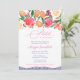 Inbjudan gäster till en överraskning party som firar en älskad dam födelsedag. Jag ville att den här designen skulle framkalla känslor av en varm sommarkväll med luft som skänkts av lokala blommor. Denna feminin- och slående inbjudan är utformad med levande rosa vattenfärgblommor och feta citrusfrukter kompletterade med mörk blått och vita mönster på framinbjudningens bas och på motsatt sida.