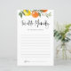 Skriv ner ditt favoritminne av bruden med detta anpassningsbara minneskort. Det har akvarellillustrationer av citroner och apelsiner. Anpassa detta citronrådgivningskort genom att lägga till dina evenemangsuppgifter. Detta citrus-favoritminne av bruden-kort är perfekt för sommarbröllopsfester och bröllop.