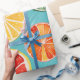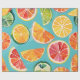 Den här teckningen visar en levande och uppfriskande mönster av citrusfrukter, som har klara skikt av orangar, citroner, kalk och grapefrukter mot en ljus turkobakgrund. De saftiga, färglösa fruktskivorna framställs med en lekfull och stiliserad metod som fångar kärnan av sommartid och färskhet. Användan av djärvt, kontrasterande färg och fruktens cirkulära arrangemang skapar en dynamisk och öga-fångstande sammansättning som exuderar energi och zest.