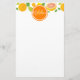 Papper med en mönster av leende orange, kalk, grapefrukt och citrontecken med löv av grönt. Kombinationen namn och monogram kan anpassas.
