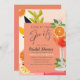 Modern citruscitron och orange Inbjudningskort för möhippan som har vattenfärgsblommor med rosa av citrusfrukter med orange och orange spritz.A perfekt inbjudningskort för möhippa för sommar och Elegant vår möhippa.