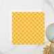 A vibrant orange and beige checkerboard pattern with alternating bright and muted squares, creating a lively and symmetrical design with a warm, energetic tone.