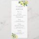 Den här elegant bröllop-menyn har en vit bakgrund med citroner/citrusfrukter, blommor och löv i vattenfärg. Anpassa den efter dina behov. Du hittar matchande produkter i min butik.