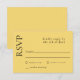 Det här enkla och smakfulla responskortet från bröllop har en levande och ny estetik, samtidigt som man behåller en elegant och en ren minimal utformning. Utformningen användor en ljus och glad citrondropppalett i färg, vilket ger en känsla av värme och glädje för det övergripande utseendet. Konstruktionens enkelhet accentueras av rent linjer och avsaknad av konkreta detaljer. Ett klassiskt teckensnittsval presenter är en allmän känsla av enkelhet och sofistikering. Matchande produkter, t.ex. en bröllopsinbjudan, informationskort, meny, Bröllopsprogram, platskort, Bordsnummer, favorittaggar, välkomsttecken, sätesdiagram m.m. Dessa finns i samma citrondroppar färg, eller blanda och matcha dem med andra samordnande citrusfrukter färger i orange och kalkgrön eller vit ge med ett fräschande utseende på bröllop-skrivbordet.