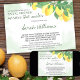 Elegant citrus-möhippa via e-postinbjudan, Möhippa över miles. Vattenfärgsdesignen har gren av färska citroner och grönt på en vattenfärgstvätta i myntgrönt. Inbjudan är skriven med avslappnad handskriven stil-typografi och mallen är inställd så att du snabbt kan anpassa informationen, inklusive dikt om du vill.