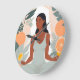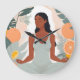 Njut av denna minimalistiska illustration av en seriös kvinna i meditationen, omgiven av levande citrusfrukter och lush tropiska löv. De mjuka, jordnära tonerna skapar en lugnande atmosfär, perfekt för att föra in en aning natur och fred i vilket rum som helst.