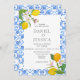 Citrus Mediterranean blue Tiles Lemon Italien bröllopsinbjudan