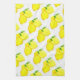 Monika Howarth målade färgen på citroner. Handmålade teckningar. Gult frukter. Kökshandduk till mamma, till henne.