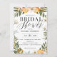 Citrus, orange + blommar möhippa bjudits in. Vackra vattenfärgsblad, frukt- och blommigt-illustrationer. Party i en samling.