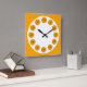 Ett halvt århundrade inspirerade designen med en återpekande med stiliserade segment av orange på vit bakgrund. Ett anpassade som du kan anpassa med egen text, bilder och egna idéer. En originalbild för digital konst skapat av Jess Perry på QuirkyChic Retro.