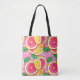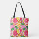 Denna handväskas har en livfull citrusdesign med blanka skivor av grapefrukt, citron och apelsin arrangerade mot en lekfull rosa bakgrund med vita prickar. Fräscha gröna blad ger en livlig kontrast och skapar ett glatt och soligt uttryck som förvandlar en praktisk vardagsväska till ett modigt stilstatement. Rymlig, lätt och slitstark är denna tote perfekt för shopping, arbete, skola, resor eller avslappnade utflykter. Med sin ljusa och uppiggande estetik ger den en uppfriskande färgklick till vilken dag som helst.