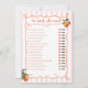 Introducing our enchanting Spritz themed 'He said, she said' game card, designed to make your special day even more memorable. This design features an orange hand-drawn doodle frame on a soft pink striped background. Adorning the frame are watercolor oranges, as well a hand drawn, whimsical orange slice, adding a touch of playful elegance to the design. The handwritten font beautifully complements the artistic frame, creating a cohesive and charming look that will captivate your guests from the moment they see it.