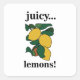 Citrus Fruit Square Sticker, ursprunglig utformning av Nisha Prabhu. Lägg till en stänk av Zest till dina ägodelar med vår citrusfruktstorget! Perfekten för att anpassa allt från bärbara datorer och bärbara datorer till vattenflaskor och paket, den här vibrerande klistermärket visar en snygg citrondesign som påminner om sommarens innersta väsen. Den här klisterlappen har en ljus och glad citronillustration mot en ren bakgrund och gör en roligt påstående samtidigt som den ger en nyck med soligt fläkt till vilken punkt som helst. Perfekt för att dekorera din planerare, skrapbok eller hemmakontor. Den här etiketten kan också användas för party favors, märkning eller som lekfull utsmyckning på gåvor. Vare sig du firar sommaren, är värd för ett citrustemat party eller bara tittar för att göra rymden ljusare, är den här etiketten ett val av roligt och festlighet.