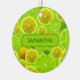 En ljus, färsk fruktig och färsk design av citron- och kalkfrukter, hela eller skivade. Ordnade i en stank, tankri och juicy mönster mot en ljus, kalkgrön bakgrund. Text i kalkgrön är lätt att anpassa till valfri namn