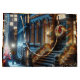 Staden tog julklappen. En illustration av en lägenhet i staden Brownstone under julhelgen i staden.