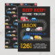 En inbjudan till roligt i toppen för en stadsbil och transport födelsedagsfest. Modern och coola!