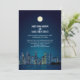 Detta är en vigselreception-inbjudan för de som kommer att ha en privat ceremoni eller rymma till vilken stad som helst. Denna inbjudan visar en stadsprofil på en stjärnklar natt med månen som stiger upp över detaljer om den anpassade eftervigselreceptionen. Perfekt för att ha en liten privat ceremoni i vilken stad som helst och ha en mottagning hemma, eller gifta sig privat och ha er mottagning i staden. Finns med matchande produkter.