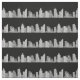 En teckning av en stadsljus bildar en obruten blek rand mot en svart nattlig himlar. byggnad och skyscraper ritas i halvgenomskinligt vitt och svart, så om man byter bakgrund på färg kommer färgen i staden att ändras för att komplettera den. Detta skulle vara ett mönster i bra för utgrävning, masker och andra hantverksprojekt. Staden skulle kunna delas i strimmor till gräns.