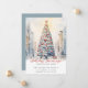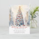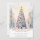 Det här festliga julkortet för flyttmeddelande har texten "Holiday Greetings from Our New Home" med en vacker akvarell av en snöig citygata med en stor julgran. Meddelandet är perfekt att skicka till vänner och familj under högtiden för att låta dem veta din nya adress. Framsidan av meddelandet har texten och akvarellscenen av den snöiga citygatan och innehåller din nya adress och kontaktinformation. Den övergripande designen är festlig och charmerande och meddelandet kommer säkert att sätta ett leende på dina nära och kära ansikten.